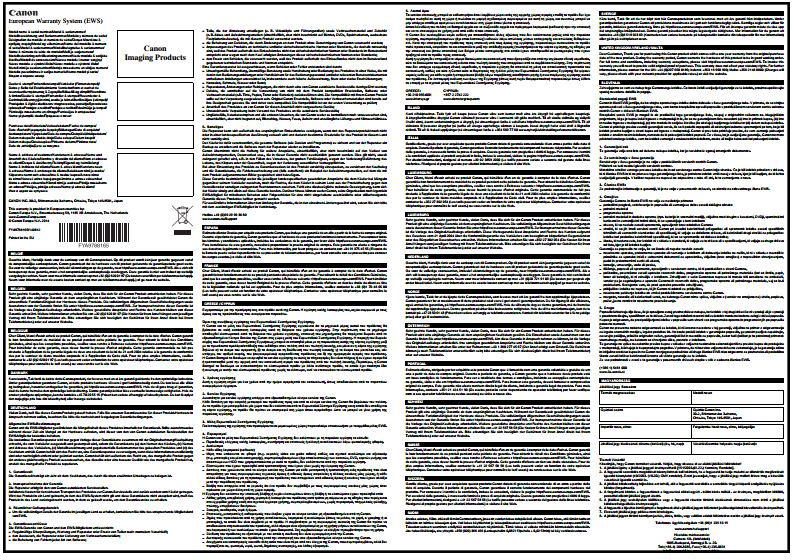 A Canon és az EWS-tagok jótállást biztosítanak a hardveres részeinek működőképességéért a jótállási időszak alatt. Amennyiben hardverhiba jelentkezik a jótállási időszakon belül, az ingyenes hardverjavítás az EWS-tagállamok hivatalos Canon szervizközpontjaiban biztosított.