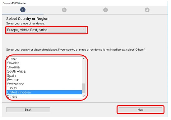 5. Válassza ki a régiót és az országot, majd kattintson a [Next/Tovább] gombra.