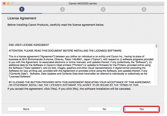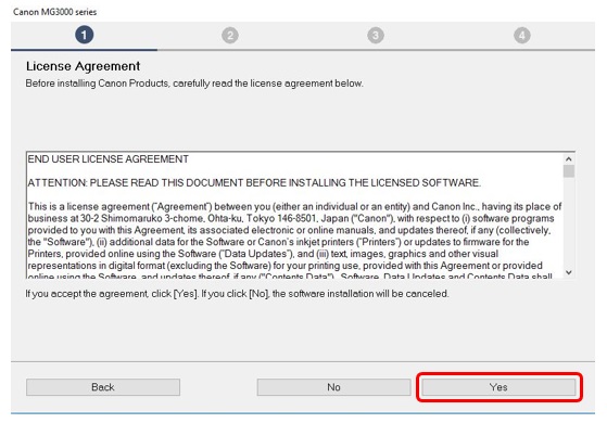 4. Ha elfogadja a licencszerződést, kattintson a [Yes/Igen] lehetőségre.