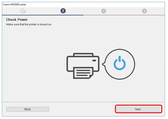 11. Győződjön meg róla, hogy a nyomtató be van-e kapcsolva, majd kattintson a [Next/Tovább] gombra.