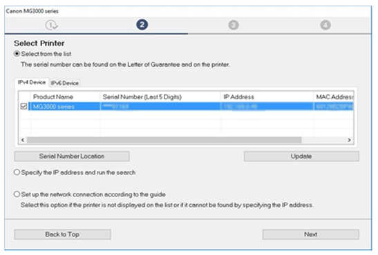 11. Ha már csatlakoztatta a nyomtatót a hálózathoz, a szoftver telepítésének elindításához válassza ki az adott nyomtatót a listából, majd kattintson a [Next/Tovább] gombra. Ezt követően ugorjon a 16. lépésre.