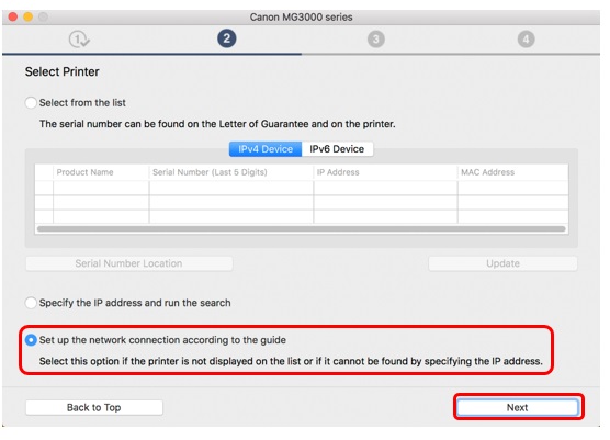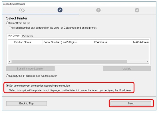 Jelölje be a [Set up the network connection according to the guide/Hálózati kapcsolat beállítása az útmutatónak megfelelően] jelölőnégyzetet, majd kattintson a tovább gombra [Next/Tovább] .