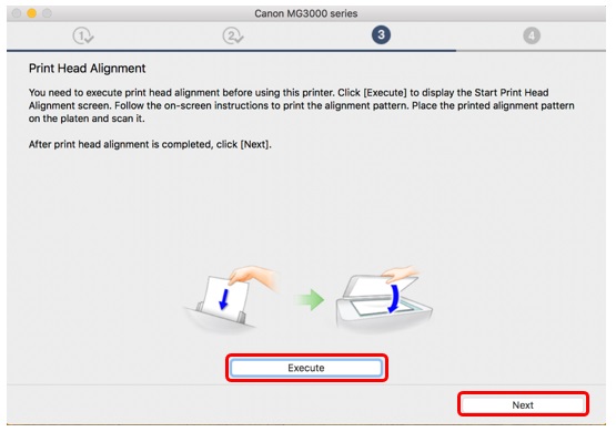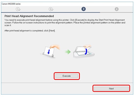 17. Ha most telepíti először a nyomtatót, ajánlott elvégezni a nyomtatófej-igazítás műveletet. A folyamat elindításához kattintson az [Execute/Végrehajtás] gombra, majd kövesse a képernyőn megjelenő utasításokat.
