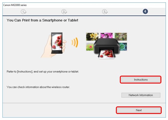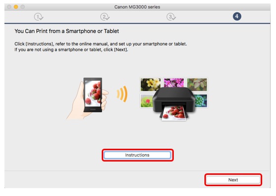 21. Az egyéb szoftverek telepítését követően egy üzenet jelenik meg, amely az okostelefon vagy a táblagép beállításáról értesíti. A készülék beállításával kapcsolatos további információk megjelenítéséhez kattintson az [Instructions/Utasítások] lehetőségre, majd a folytatáshoz kattintson a [Next/Tovább] lehetőségre.