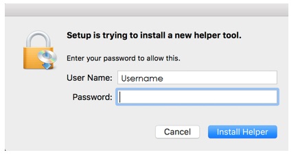 2. Ha megjelenik a következő képernyő, a súgóeszköz telepítésének engedélyezéséhez írja be a jelszót, majd kattintson az [Install Helper/Súgó telepítése] lehetőségre.