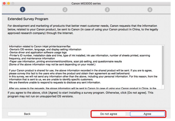 7. Ha szeretne részt venni az Extended Survey Programban, kattintson az [Agree/Elfogadás] lehetőségre, ellenkező esetben pedig kattintson a [Do not agree/Nem fogadom el] lehetőségre.