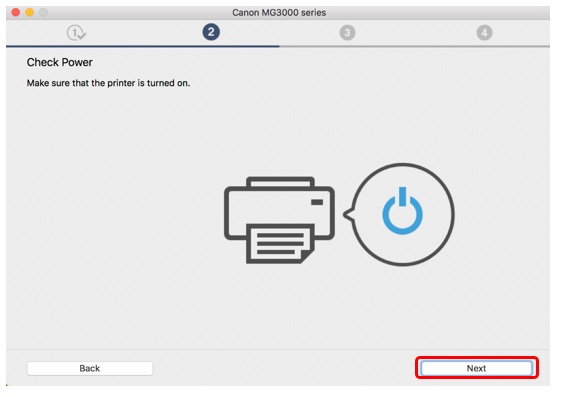 9. Győződjön meg róla, hogy a nyomtató be van-e kapcsolva, majd kattintson a [Next/Tovább] gombra.