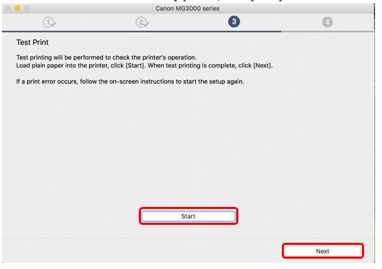 23. A tesztnyomtatáshoz kattintson a [Start/Indítás] gombra, majd kattintson a [Print/Nyomtatás] gombra.