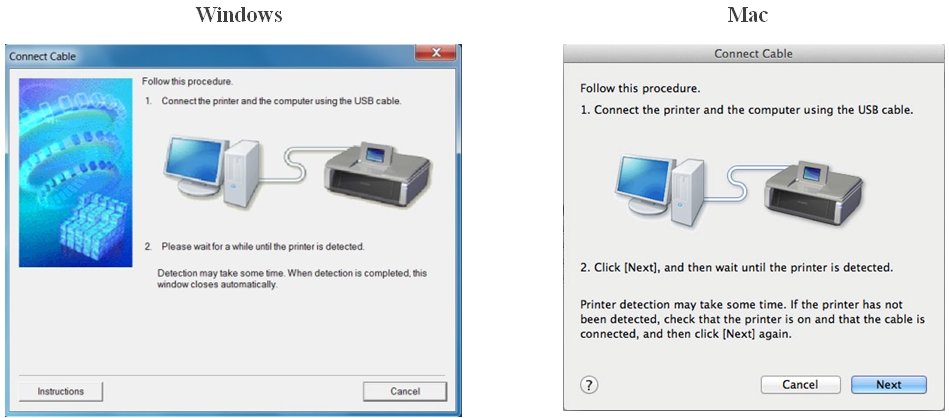 7. Ha megjelenik a következő képernyő, a tartozék USB-kábel segítségével csatlakoztassa nyomtatóját a számítógéphez. Ezen a kábelen található a csatlakozón lévő