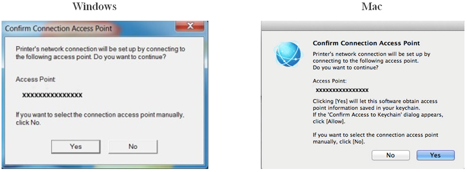 Ha ez az a vezeték nélküli hálózat, amelyikhez nyomtatóját csatlakoztatni szeretné, kattintson a [Yes/Igen] gombra.