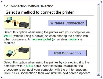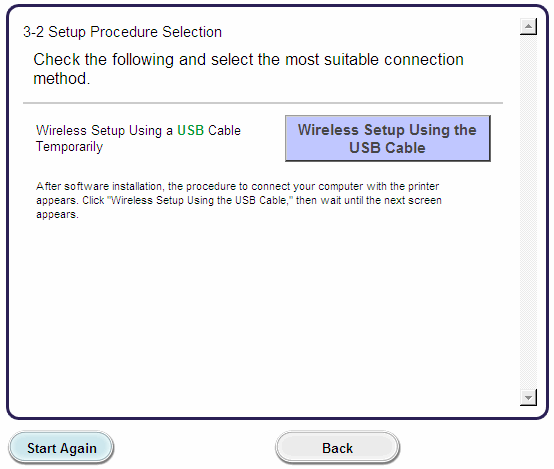 5. Csak Windows-felhasználóknak: Válassza ki a [Wireless Setup Using the USB Cable/Vezeték nélküli hálózat beállítása USB-kábel segítségével] lehetőségre.
