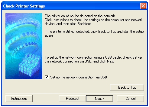 6. Válassza ki a [Set up network connection via USB/Vezeték nélküli hálózat beállítása USB-kábel segítségével] lehetőséget, majd kattintson a [Next/Tovább] gombra.