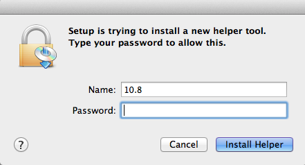 Ha megjelenik a következő képernyő, a súgóeszköz telepítésének engedélyezéséhez írja be a jelszót, majd kattintson az [Install Helper/Súgó telepítése] lehetőségre.