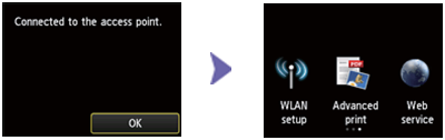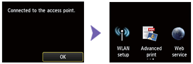 4. Ha megjelenik az alább bal oldalon látható képernyő, a beállítás befejezéséhez érintse meg az [OK] gombot.