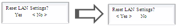 1. A nyílgombok segítségével válassza ki a [Reset LAN settings/LAN-beállítások visszaállítása] menüpontot, majd nyomja meg az [OK] gombot.