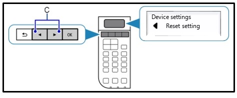 - A nyílgombok segítségével válassza ki a [Reset setting/Beállítás visszaállítása] lehetőséget, majd nyomja meg az [OK] gombot.