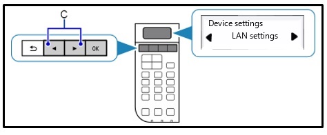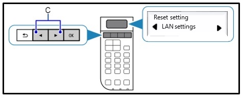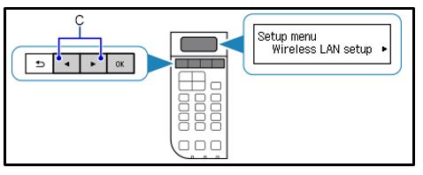 - A nyílgombok segítségével (C) válassza ki a [Wireless LAN setup/Vezeték nélküli LAN beállítása] menüpontot, majd nyomja meg az [OK] gombot.